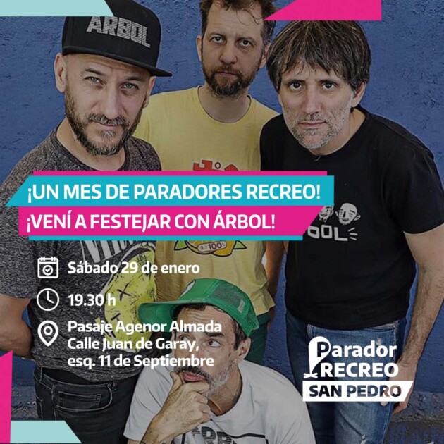 El Ministerio de Producción, Ciencia e Innovación Tecnológica de la provincia de Buenos Aires anunció que el sábado 29 de enero el Parador ReCreo de San Pedro festeja un mes a puro verano con actividades, sorpresas y un gran show de cierre a todo rock con Árbol, la banda de rock alternativo de Haedo.
