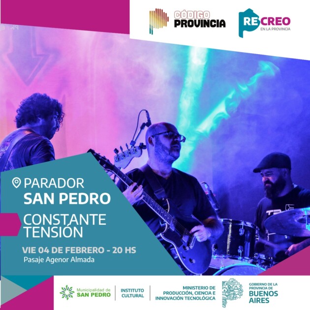 Además, en el marco de la programación de Código Provincia, la política de promoción de la cultura bonaerense que visibiliza a músicas y músicos locales, se programan shows a las 20. Esta semana se presentan: Hernán Crespo (jueves 3), Constante tensión (viernes 4) y Mostruo! (sábado 5).