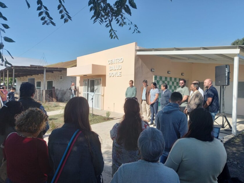 En la mañana de este sábado se llevó a cabo la inauguración del Centro de Salud de Pueblo Doyle a través de un emotivo acto encabezado por el Intendente Municipal Dr. Ramón Salazar junto al ex intendente y miembro del Directorio de Trenes Argentinos Cargas Cecilio Salazar, el Secretario de Salud Pablo Pichioni, el Delegado Municipal Luciano Juhant, el Director del Hospital de Santa Lucía Carlos Gutiérrez, el Director del Hospital Emilio Ruffa Daniel Creus, el Director de Atención Primaria de la Salud Gabriel Sayago, el coordinador de personal de la Secretaría Augusto Ramos y la enfermera Carolina Miño quien se desempeñará en el nuevo edificio con el que cuenta la localidad que fue realizado con fondos propios a través del programa “Sumar” de la Secretaría de Salud.