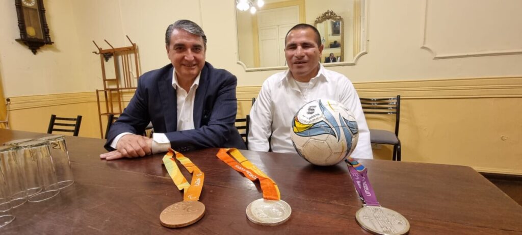 Acompañado por su familia, con sus medallas obtenidas como capitán de “Los Murciélagos” y un balón sonoro como el que se usa para jugar a este deporte, Silvio recorrió su historia desde su origen humilde en Las Canaletas hasta llegar, a lo máximo de una disciplina deportiva que es un auténtico ejemplo, más allá del deporte.