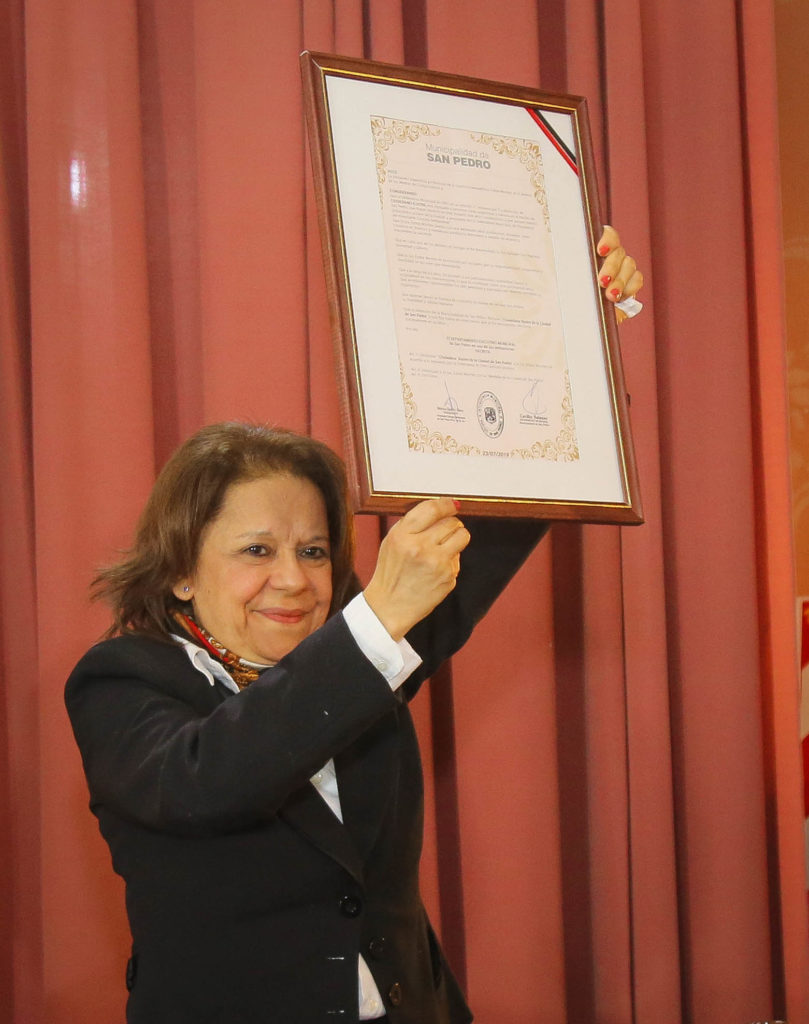La locutora sampedrina recibió de manos del Intendente Municipal Cecilio Salazar y de la Presidente del HCD Mónica Otero, el merecido reconocimiento como Ciudadana Ilustre de San Pedro y la Medalla de la Ciudad.