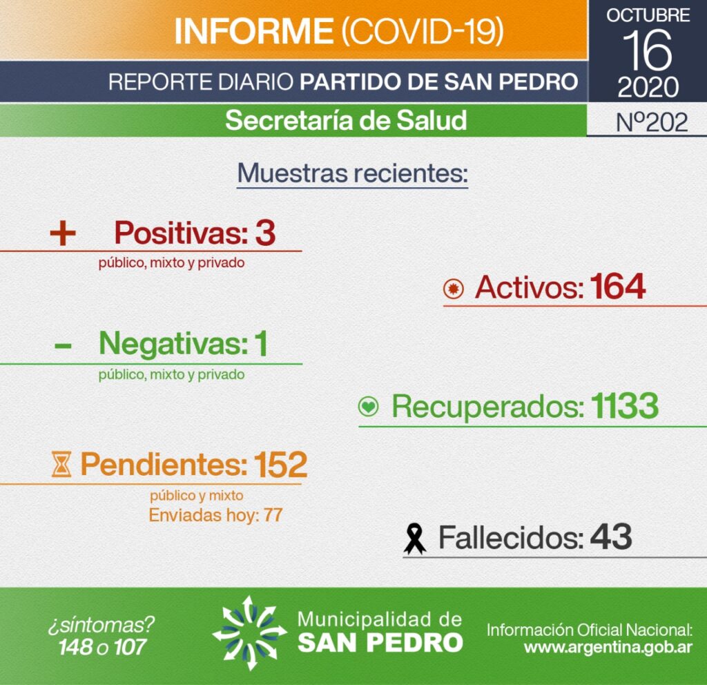 La Secretaría de Salud de la Municipalidad de San Pedro informa la actualización de seguimiento a la Pandemia de Covid-19.
