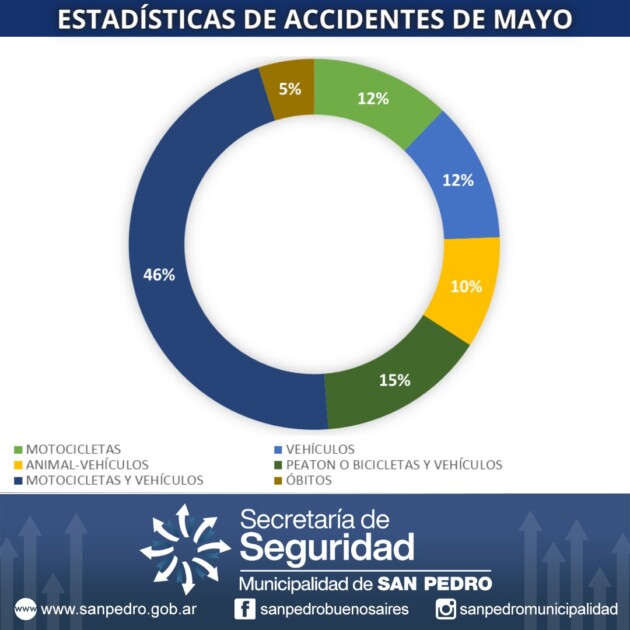 La Secretaría de Seguridad de la Municipalidad de San Pedro presenta el informe mensual elaborado, a través del Observatorio Vial, con los registros que se cargan cotidianamente sobre las características de los accidentes que son reportados en el Partido. Durante el mes de mayo se contabilizaron 39 accidentes.