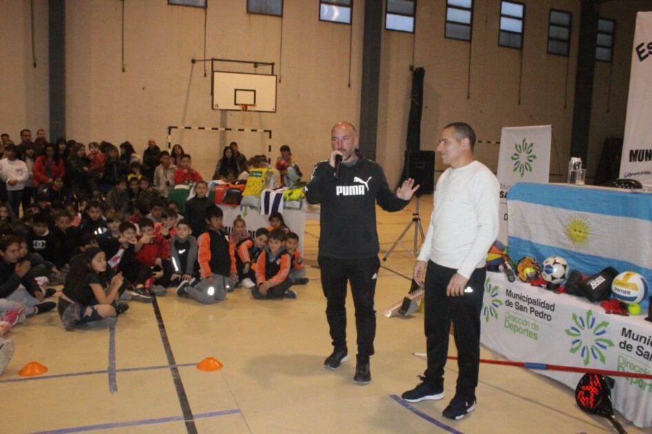 Este miércoles, en el gimnasio del Estadio Municipal, se llevó a cabo un encuentro en el marco del programa “Educando Valores” que lleva a delante la Dirección de Deportes de la Municipalidad de San Pedro junto al deportista sampedrino, Silvio Velo, quien ha acumulado múltiples campeonatos capitaneando a la selección argentina Los Murciélagos.