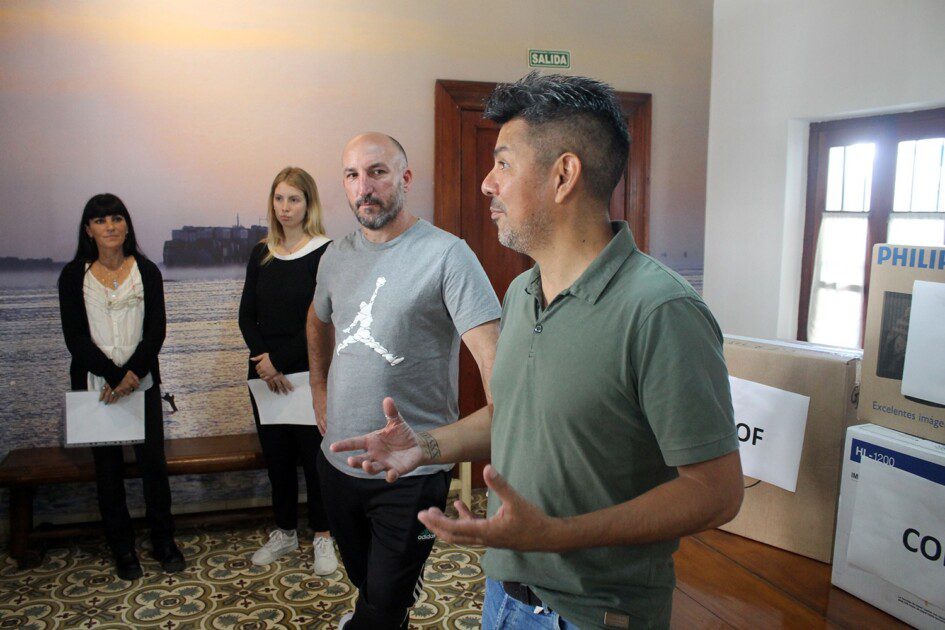 En este contexto, el Secretario de Turismo, Cultura, Deportes y Educación, Prof. Mariano Arnal y el Director de Educación, Prof. Alan Ocampo, entregaron el equipamiento a las Escuelas de Educación Primaria N° 30, N° 16 y N° 43, al Centro Educativo de Nivel Secundario (CENS) 452 y al Centro de Orientación Familiar (COF).