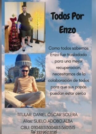 Su familia ha iniciado una campaña solidaria para recaudar fondos y poder acompañarlo en esta etapa. Quienes deseen colaborar pueden hacerlo a través de la cuenta a nombre de Daniel Oscar Solera, con el alias SUELO.ADOBO.ALBA.