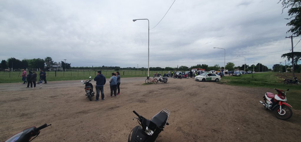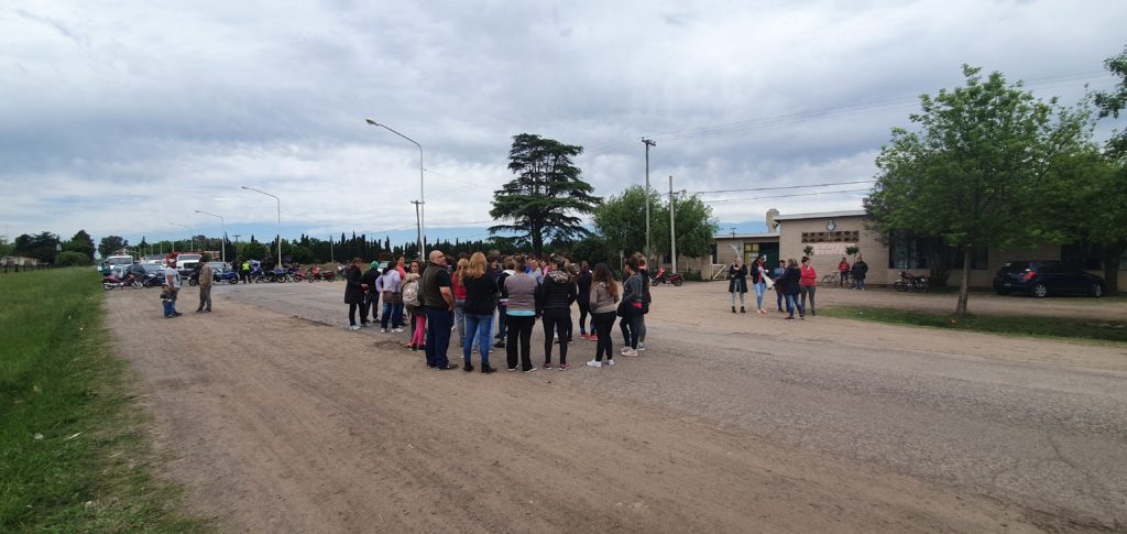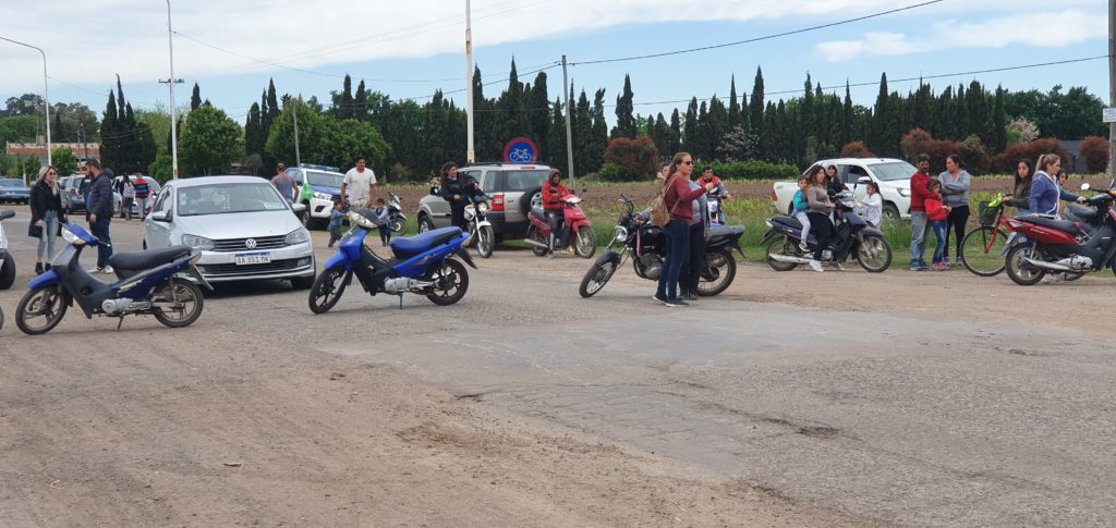 Organizaron una «sentada», así lo llamaron papás, mamás, vecinos de la escuela y jardín, manifestando su preocupación por graves accidentes en la zona, con el objetivo de pedir que el Municipio realice una bicisenda, control de inspección a la entrada y salida de los chicos, el arreglo de la Ruta y el control de animales sueltos.
