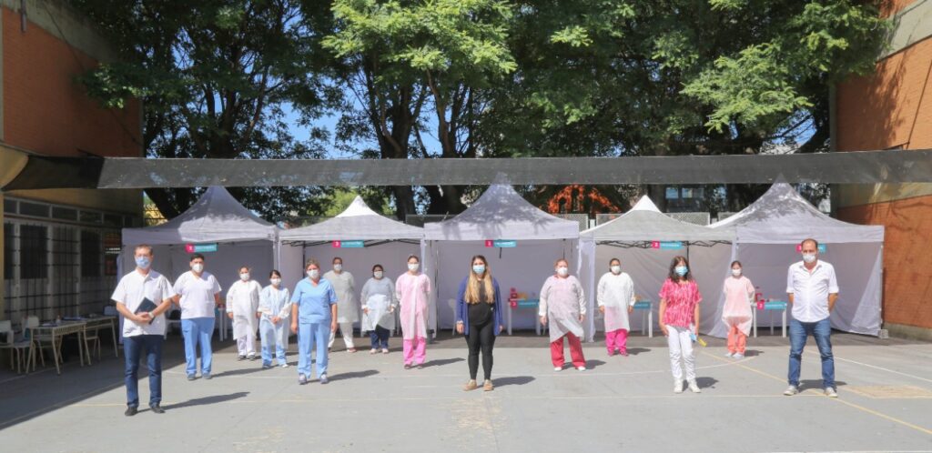 El Secretario de Salud Dr. Daniel Creus, la Dra. Silvana Morales coordinadora de vacunación de la Secretaría de Salud y Camila Caballero coordinadora local del Programa “Vacunate Buenos Aires” brindaron una conferencia de prensa en las puertas del establecimiento.