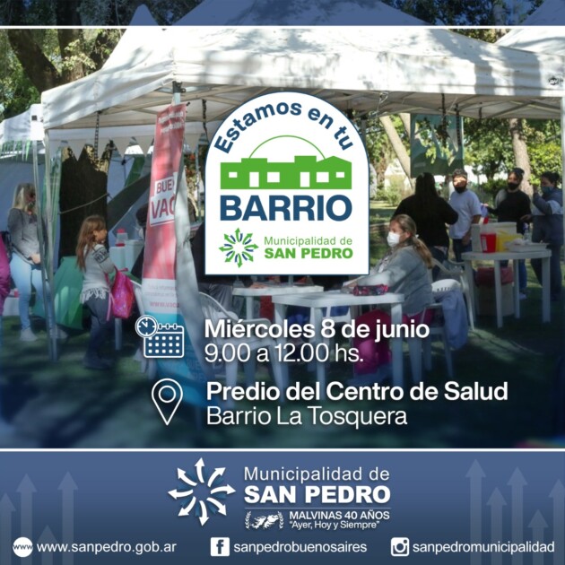 El próximo miércoles 6, el programa de la Municipalidad de San Pedro arribará a La Tosquera, con las distintas áreas municipales, para acercar soluciones a vecinos y vecinas del barrio. Será entre las 09.00 y las 12.00, en el predio del centro de Salud de La Tosquera.