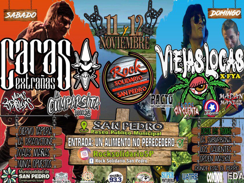 La Municipalidad de San Pedro anuncia la octava edición de «Rock Solidario San Pedro», que se llevará a cabo el sábado 11 y domingo 12 de noviembre en el Paseo Público Municipal.