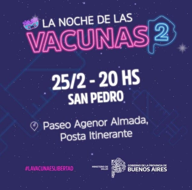 Este viernes 25 de febrero de 20 a 23hs te esperamos en el Paseo Agenor Almada para iniciar, completar o reforzar los esquemas de vacunación.
