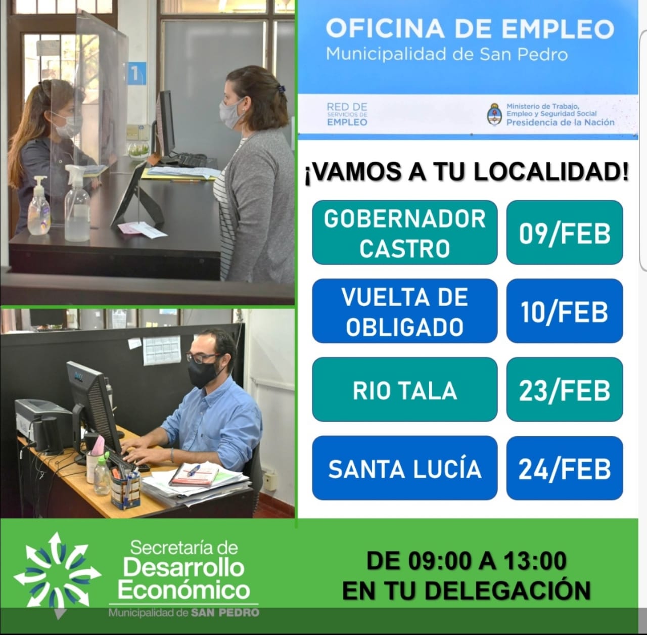 Continuando con la recorrida que comenzó hace algunos días en Gobernador Castro y Vuelta de Obligado, se recibieron inquietudes e inscripciones para los programas de formación y acceso al empleo que brindan asistencia económica, capacitación y facilidades para concluir estudios, entrenamientos laborales y emprendimientos.