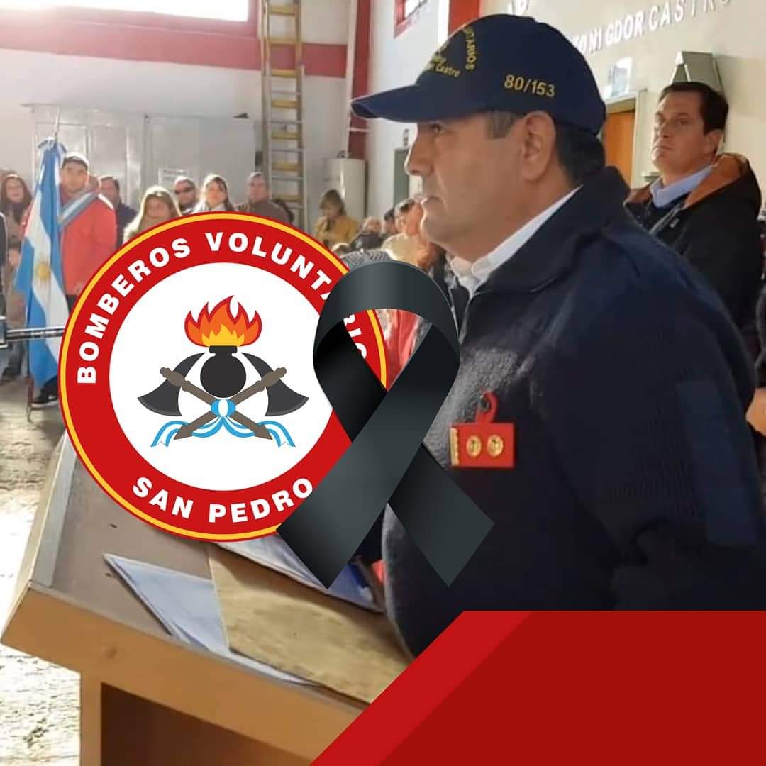 La Asociación Bomberos Voluntarios de San Pedro despide con tristeza y reconocimiento al Oficial de Dotación en reserva Daniel Caro que falleció hoy a los 52 años como consecuencia de los efectos del Covid-19. Destacamos su trayectoria dentro de nuestra institución como ex Jefe del Destacamento de Gobernador Castro y actual miembro del Consejo Directivo.