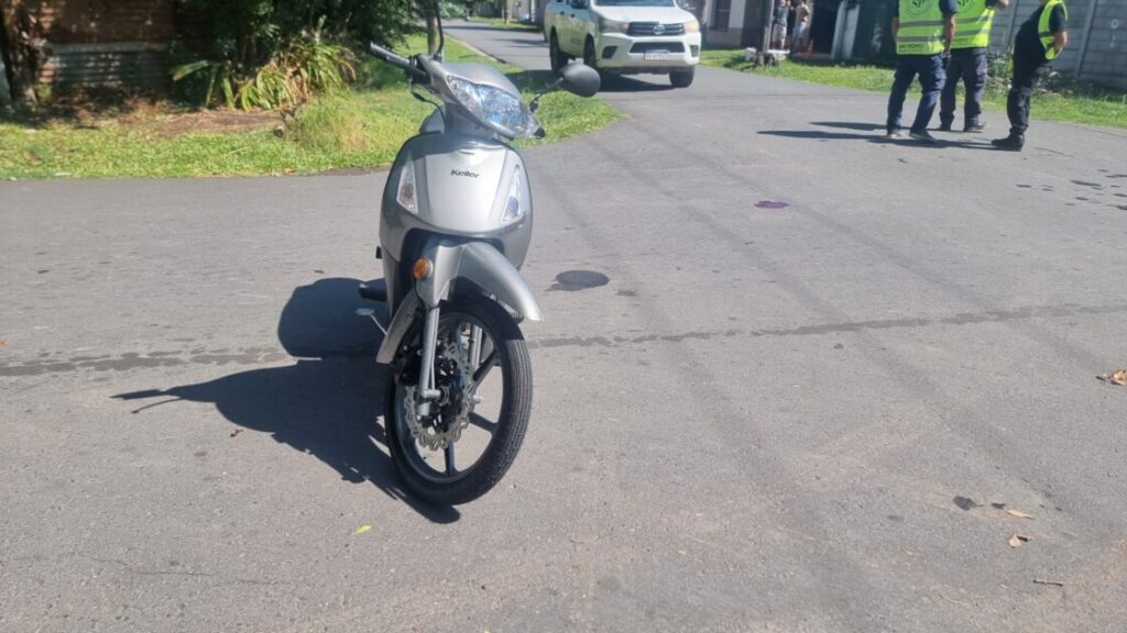 El siniestro se produjo alrededor de las 10 de la mañana en la intersección de Sinónimo y Miguel Porta, cuando la mujer circulaba en una motocicleta 110 cc de color gris acompañada por su nieto de 18 años, quien conducía el rodado.