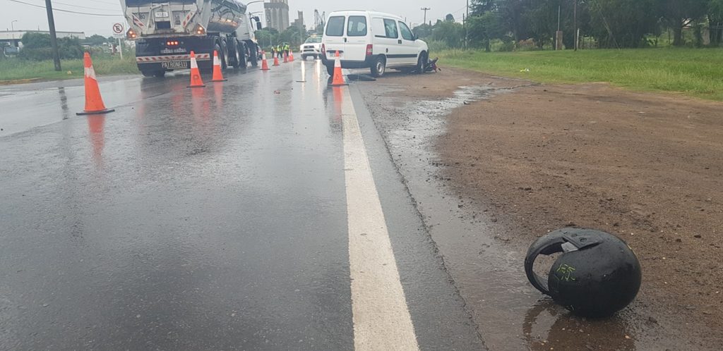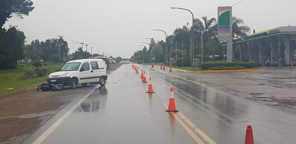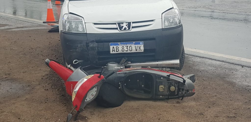 El siniestro ocurrió alrededor de las 10:15 hs en la Av. Crucero General Belgrano donde una motocicleta Corven Energy 110 cc roja en la que circulaba una mujer mayor de edad que es impactada de lleno con la trompa de una camioneta Peugeot Partner color blanca que salia de la estacion de servicio arrastrando la moto un par de metros.