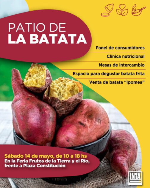 Aprovechando la realización del evento clásico sampedrino, desde el Proyecto Local del INTA “Batata de calidad sampedrina” se abrirá un patio con actividades durante todo el día para conectar con el potencial de este noble, sabroso y nutritivo producto.