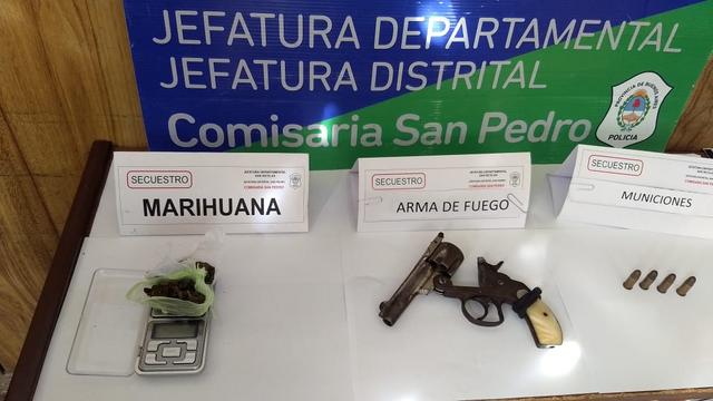 La detención se produjo en calle Sargento Selada entre Guemes y Balcarce, los efectivos que se encontraban en recorrido habitual proceden a la identificación del delincuente mayor de edad, una vez cursado sus datos constatan que entre sus ropas llevaba un arma de fuego cal.38 cargada, y 6 envoltorios de nylon con marihuana,