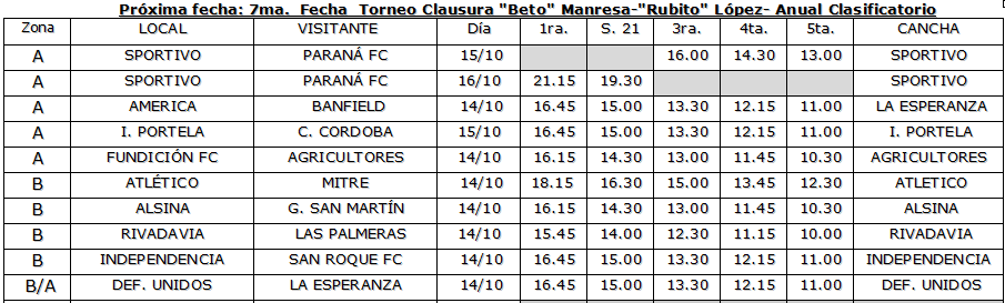 La jornada 7 del Torneo “Beto Manresa-Rubito López” de jugará en esos tres días con partidos más que interesantes para la clasificación a la ronda final del certamen.