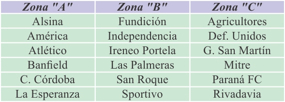 Las zonas y primera fecha quedaron conformadas de la siguiente manera: