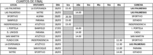 Primera división: Las Palmeras vs. La Esperanza, Sportivo vs. Alsina, Banfield vs. Paraná, Independencia F.C. vs. Atlético.