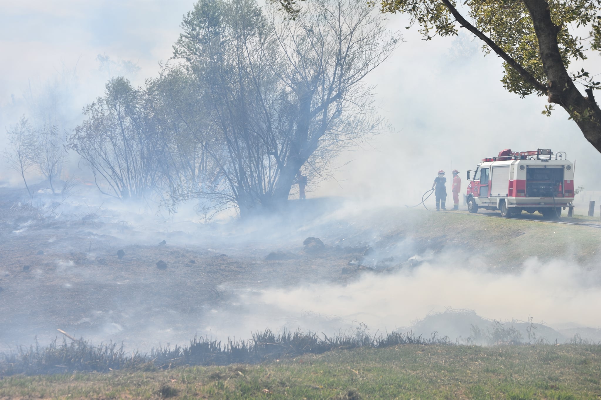 En horas cercanas al mediodía se hizo presente dos dotaciones de Bomberos Voluntarios con 10 personas para poder sofocar un gran foco ígneo que se desarrollaba dentro del paseo publico en el sector del bañado ubicado entre en el ex Actur y el Paseo Publico.