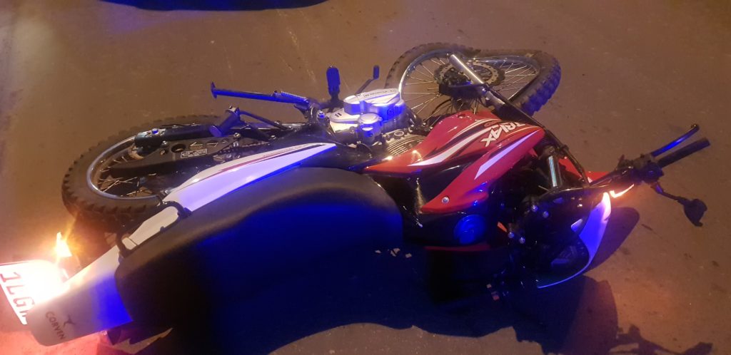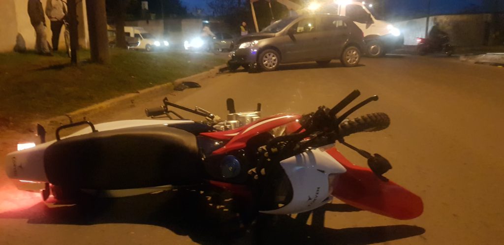 En la tarde noche de este martes se produjo un accidente en la intersección de Salta y Juan B. Justo cuando un automovil Volkswagen Gol Trent color gris que era manejado por un masculino mayor de edad que circulaba por ruta 1001 impacta a una motocicleta Guerrero Triax 150 cc conducido por un joven que se le cruzo por calle Salta.