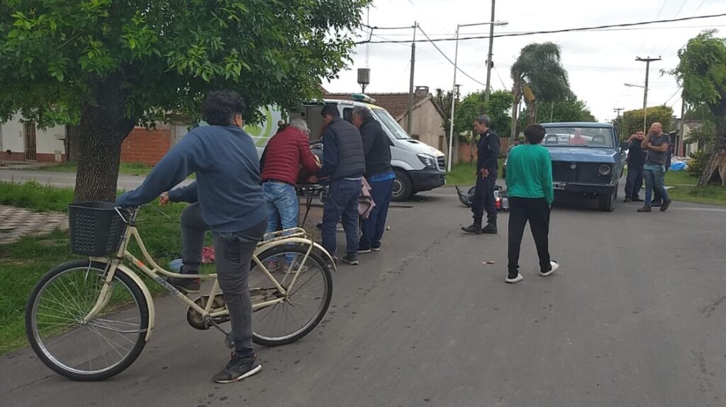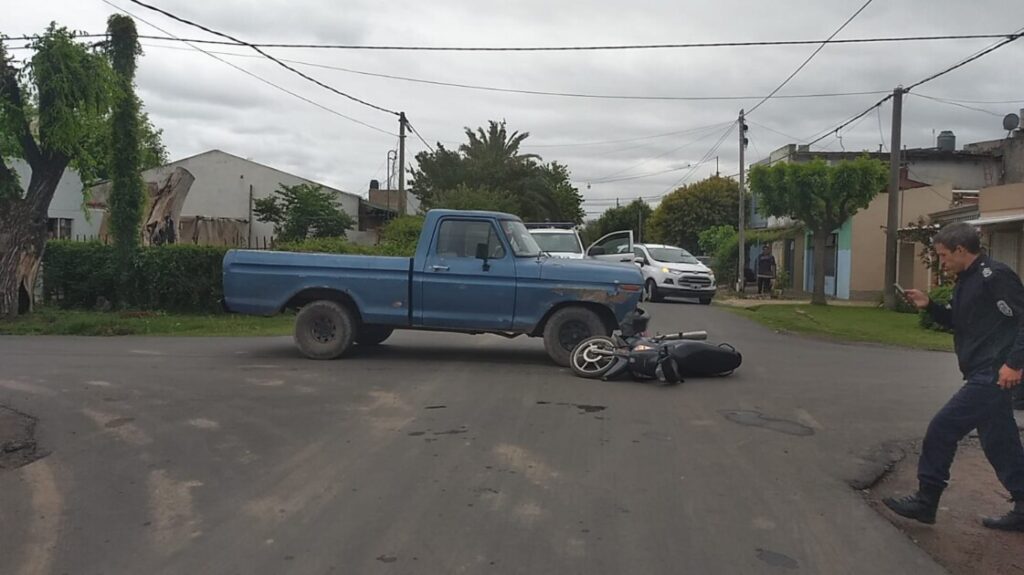 Este miércoles pasadas las 16 hs ocurrió en la esquina de Miguel Porta y Martin Fierro, ocurrió un choque donde se vieron involucradas una motocicleta tipo 110 cc en la que circulaba una mujer y su hija que fue impactada por una camioneta F100 color azul conducido por un ciudadano mayor de edad.