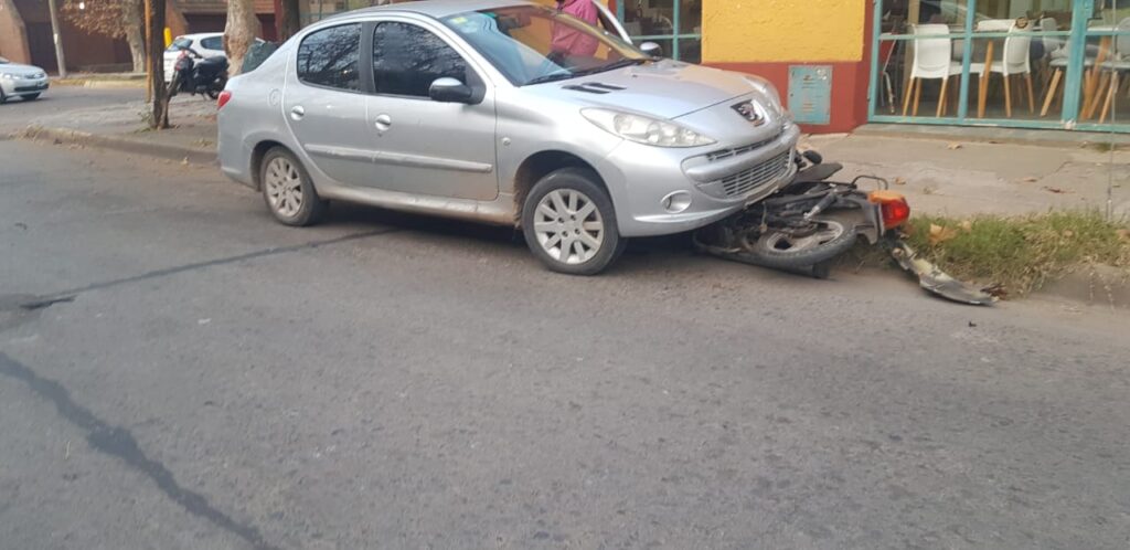El siniestro lugar tuvo lugar en la esquina de 25 de Mayo y Boulevard Moreno, donde un automóvil Peugeot conducido por un masculino choco y arrastro por algunos metros a una motocicleta 110 cc en la que circulaba un joven de alrededor de 20 años.