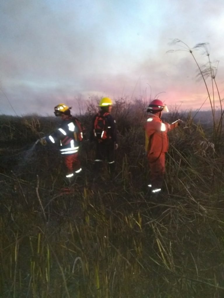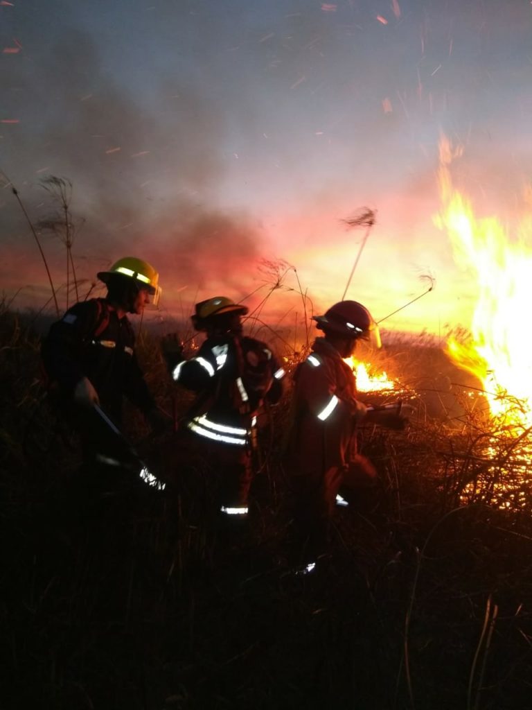 El fuego es combatido con un arduo trabajo con mochilas con agua y cortafuegos manuales, hasta este domingo por la noche aún no fue sofocado.