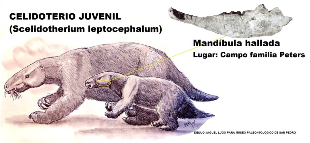 Es una mandíbula de una pequeña cría de Celidoterio. Fue encontrada en una cantera propiedad de la familia Peters