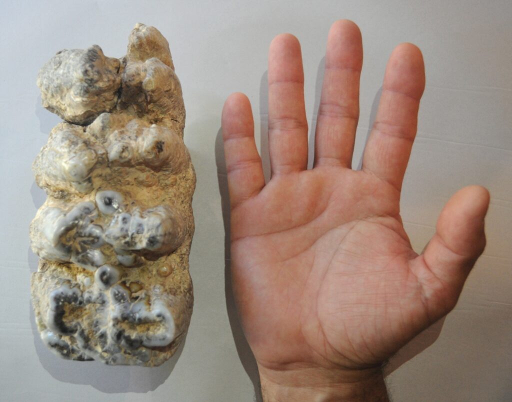 Lo más impactante del hallazgo es el enorme molar recuperado. Mide 20 centímetros de longitud, 9 centímetros en su parte más ancha y pesa 1,6 kilogramos.