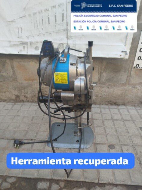 Tras recibir una alerta, los efectivos procedieron al secuestro de una sierra circular eléctrica, marca Keller KN110, modelo DAPET, de color gris, que se encontraba en poder de terceros. La herramienta fue identificada como propiedad de una mujer de 40 años, quien había denunciado su sustracción.