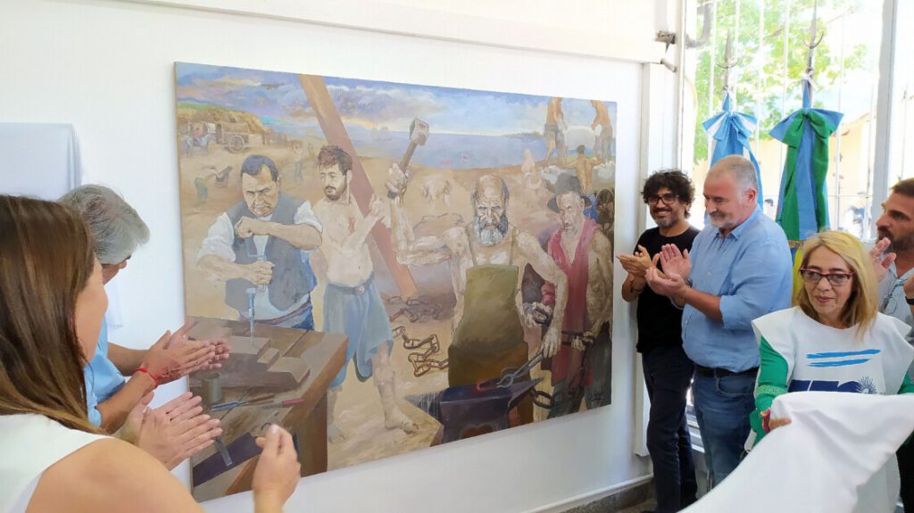 Durante el encuentro, el artista sampedrino, Jorge López presentó una obra conmemorativa realizada con tierra de la Vuelta de Obligado, como símbolo del vínculo entre el pasado y el presente. “Este cuadro es un homenaje a los trabajadores de la lucha por la soberanía, quienes pusieron su cuerpo y herramientas en defensa de la nación» expresó.