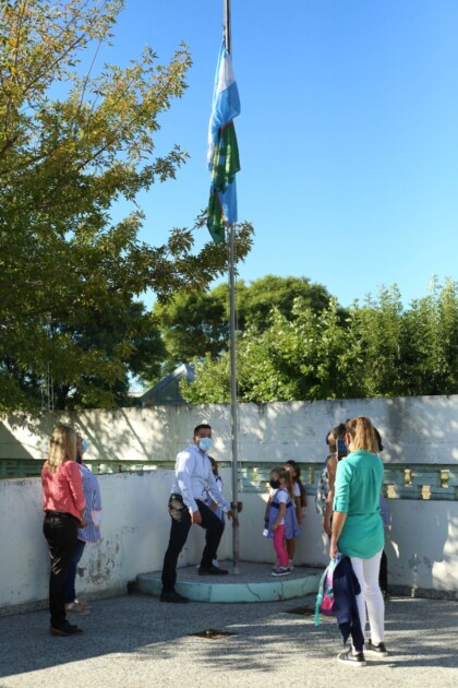 La actividad comenzó con la presentación de los abanderados y la entonación del himno nacional junto al izamiento de las banderas Argentina y Bonaerense.
