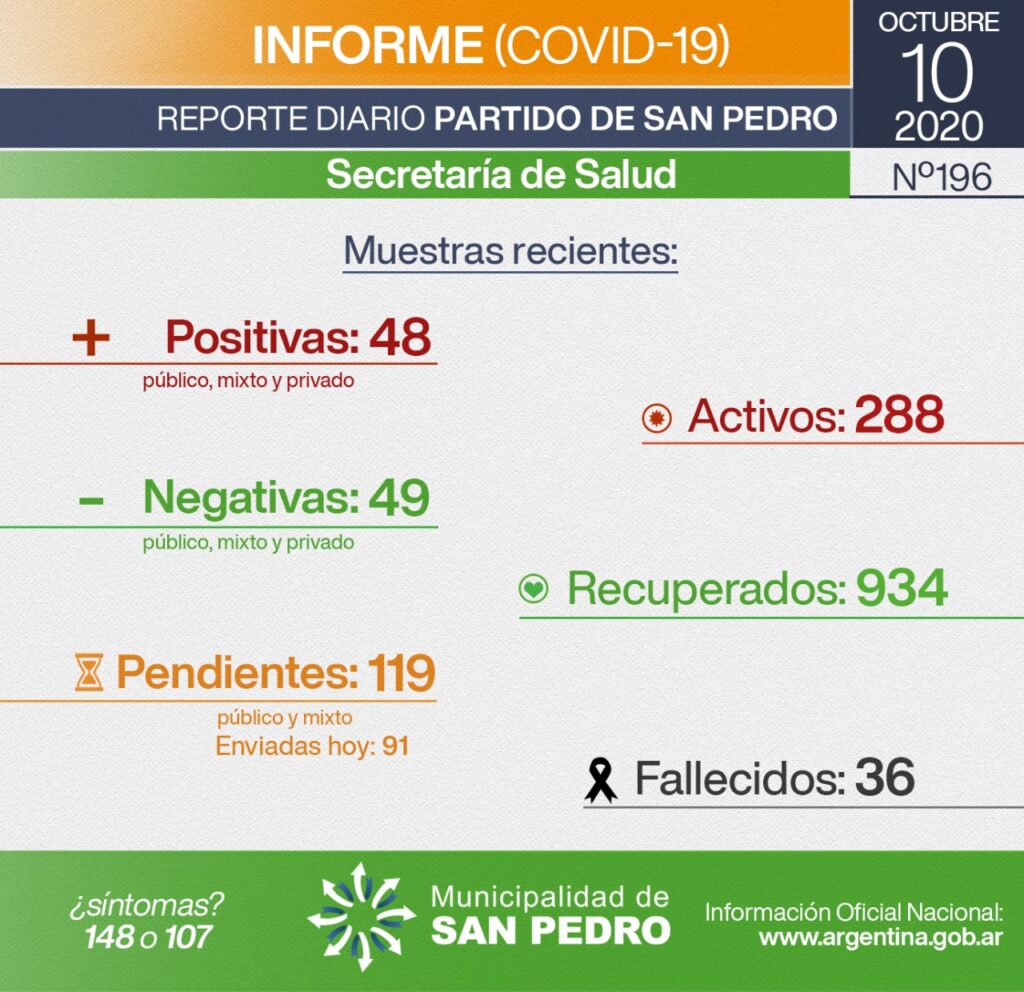La Secretaría de Salud de la Municipalidad de San Pedro informa la actualización de seguimiento a la Pandemia de Covid-19.
