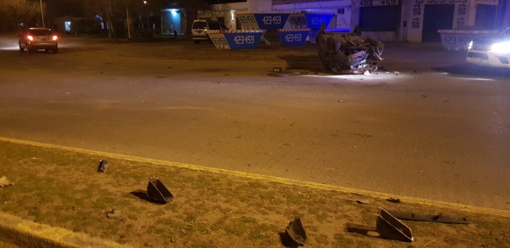 En la madrugada de domingo en la rotonda de calle Mitre un automóvil Renault 9 color bordo conducido por un ciudadano mayor de edad que venía ingresando a la ciudad perdió el control e impacto contra una columna de alumbrado provocando un grave vuelco.