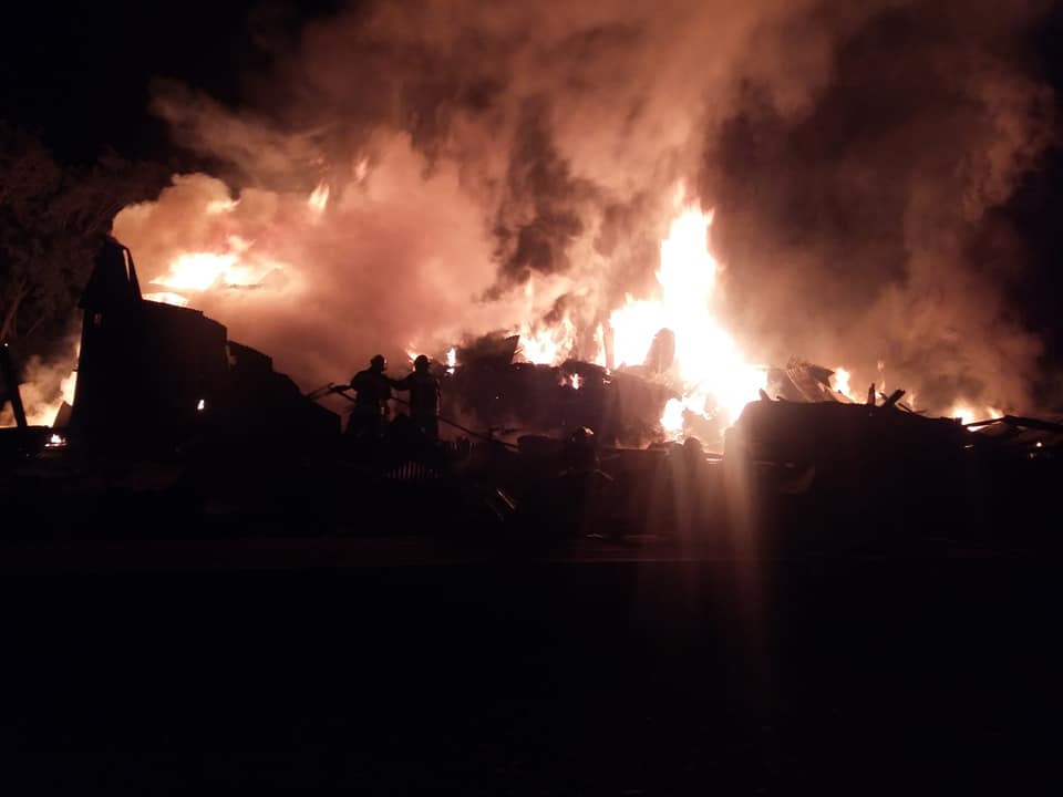 Hubo pérdidas totales, el espacio cubierto se derrumbó por completo, pero por suerte, no hubo que lamentar víctimas fatales; se investigan las causas del origen de las llamas que consumieron la totalidad de la estructura.