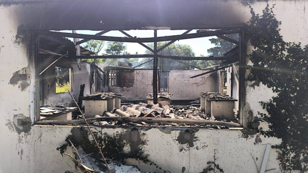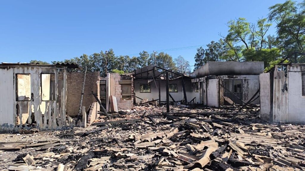 «Lamentamos informar que uno de los siniestros registrados en las últimas horas en la localidad de Río Tala afectó las instalaciones donde se proyectaba la apertura del Destacamento N°2 de Bomberos Voluntarios. Un hecho generado de forma intencional destruyó por completo la estructura del lugar».