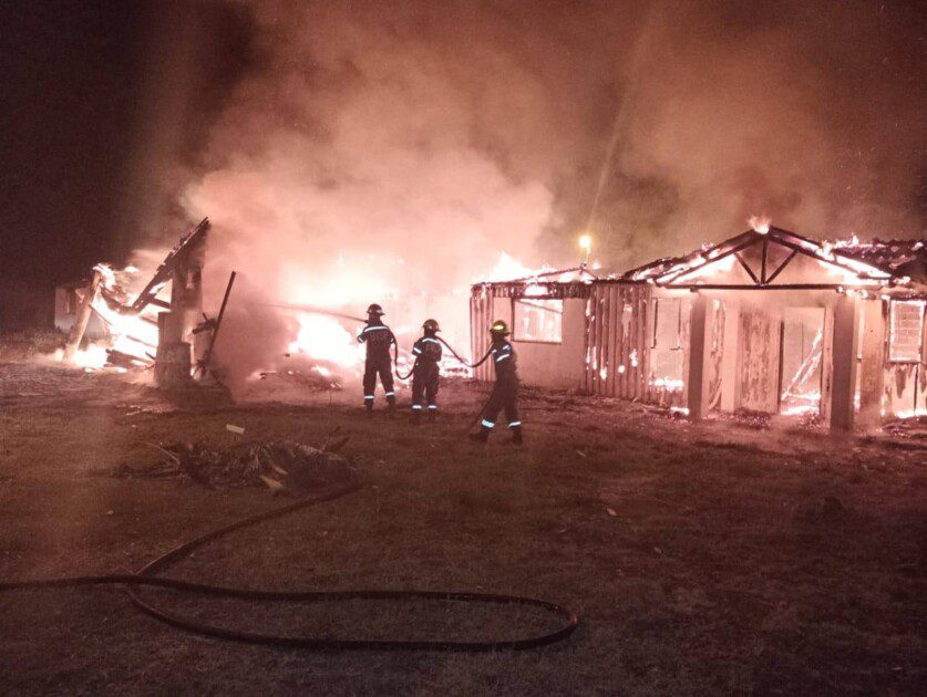Sin embargo, poco después de llegar, fueron nuevamente llamados para atender un incendio de pastizales en las instalaciones del futuro Destacamento N°2 de Bomberos Voluntarios. Al llegar al lugar, descubrieron que en realidad el edificio estaba en llamas. Según explicó Edgardo Epelde, jefe del Cuerpo de Bomberos, trabajaron hasta pasadas las 7:00 a.m., pero las llamas destruyeron por completo la estructura y el proyecto pensado para el destacamento.