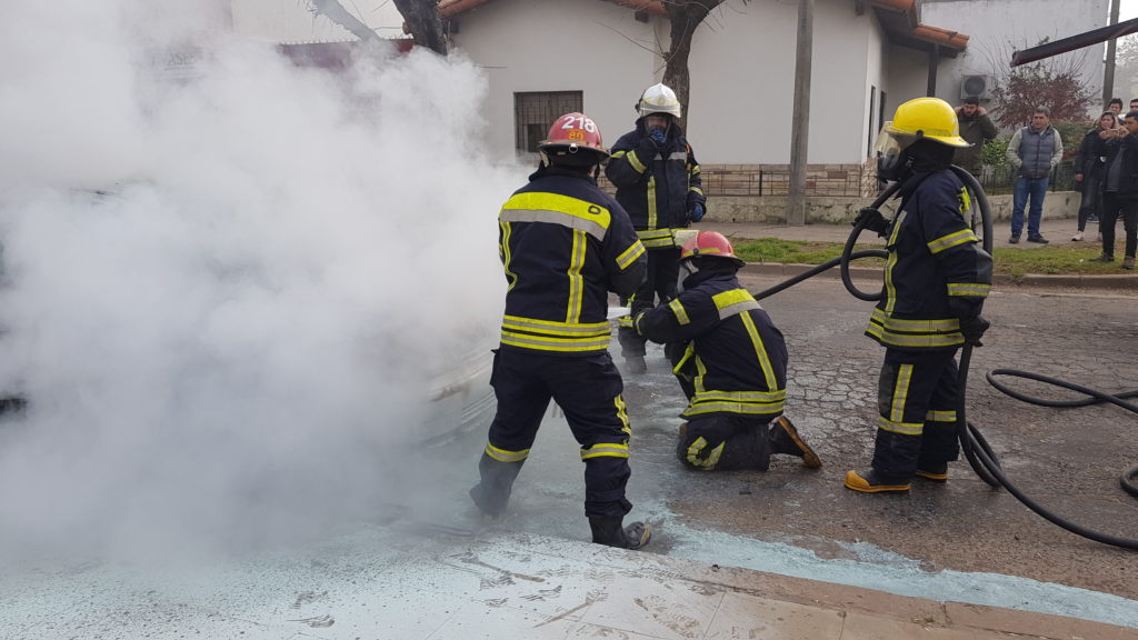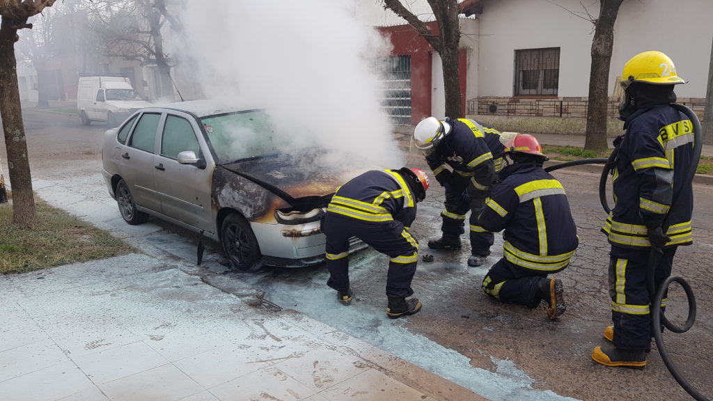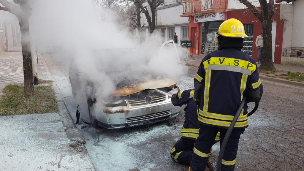 Se hizo presente rápidamente en el lugar una dotación de Bomberos Voluntarios dirigida por Hector Keudell que sofoco de manera inmediata el fuego evitando la perdida total del automovil.