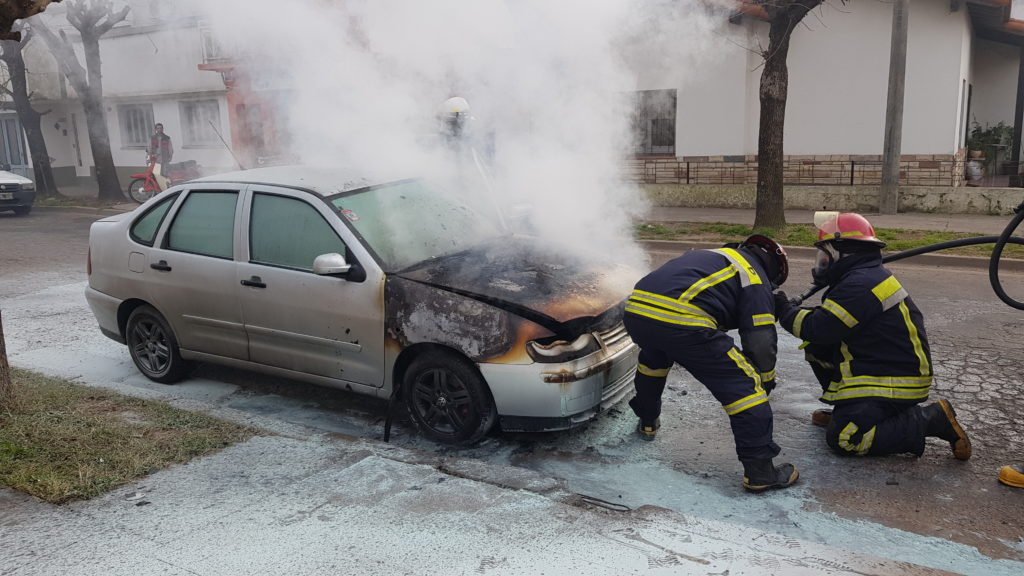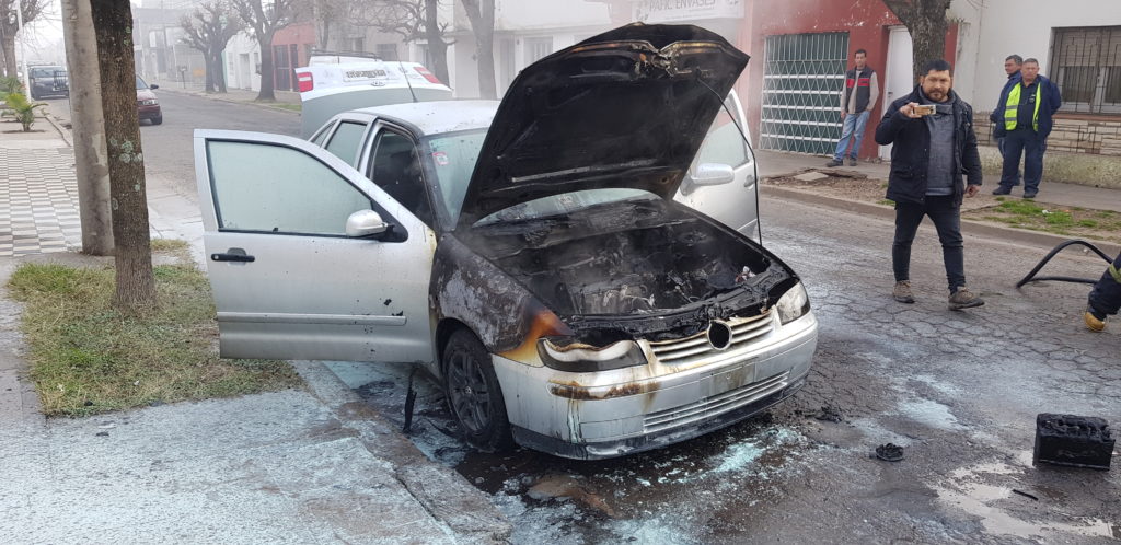 En la esquina de Colón y Rivadavia se produjo el incendio de un automóvil VW Polo Gris, en el que circulaba una ciudadana.