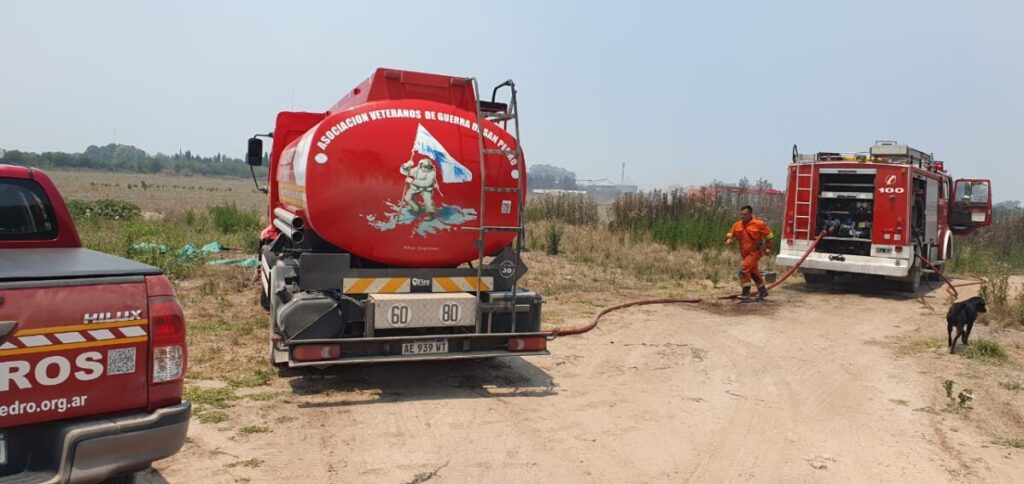 En el lugar se hicieron presentes 5 dotaciones de bomberos para frenar el fuego antes de que llegue a la vivienda.