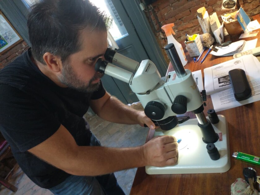 Durante la jornada, el Dr. Luciano Brambilla y el Lic. Damián Ibarra recorrieron el museo y analizaron en detalle un ejemplar de armadillo fósil recuperado en una cantera perteneciente a la familia Iglesias. El material se encuentra actualmente en etapa de revisión científica.