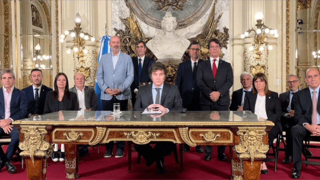 Javier Milei realizó la primera cadena nacional de su presidencia para anunciar el DNU para desregular la economía, la principal medida de su Gobierno y con la que espera llevar a cabo el ajuste que pregonó durante la campaña y el día de su asunción.