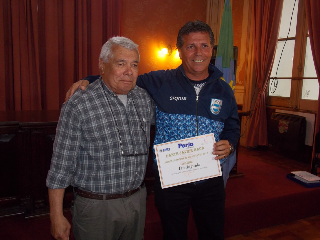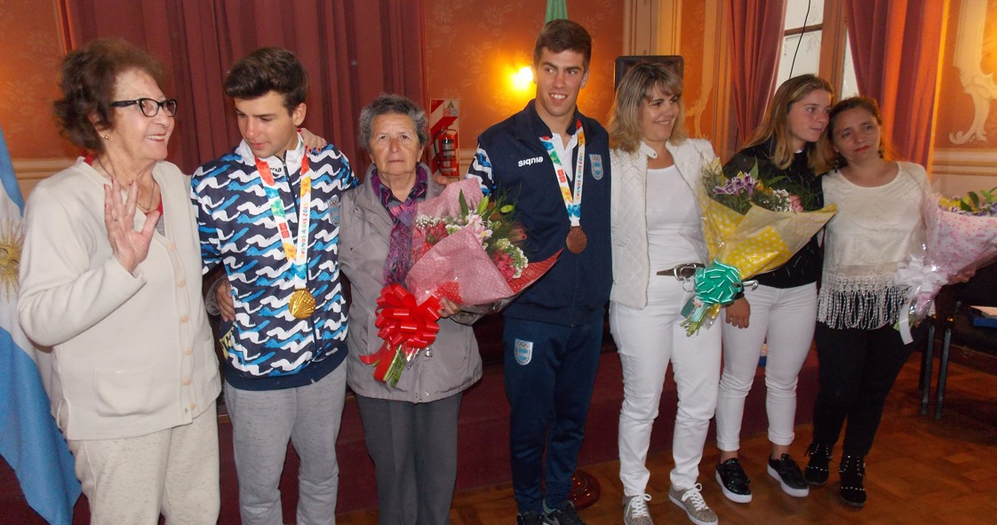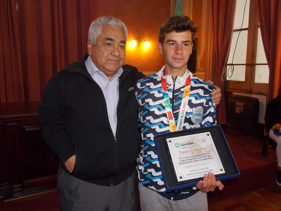 El Intendente Municipal Cecilio Salazar, funcionarios de su gabinete y el Honorable Concejo Deliberante distinguieron en el Salón Dorado a los representantes sampedrinos en los Juegos Olímpicos de la Juventud Buenos Aires 2018, Dante Cittadini Medalla de Oro en Nacra 15 y su entrenador Nicolás Scharogodsky, Valentín Rossi Medalla de Bronce en Canotaje, Rebeca D’Estefano Diploma por 6º puesto en Canotaje y Dante Baca Comisario Deportivo Internacional de Ciclismo.
