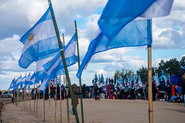 Este sábado 17 de julio, organizaciones sociales, políticas y ambientales de todo el país realizaron actividades sobre la costa del Río Paraná, en el sitio Histórico de Vuelta de Obligado, en la localidad bonaerense de San Pedro, con el objetivo de visibilizar la consigna “necesitamos recuperar y reafirmar nuestra soberanía de la Vía Troncal del Paraná y en el Canal Magdalena”.