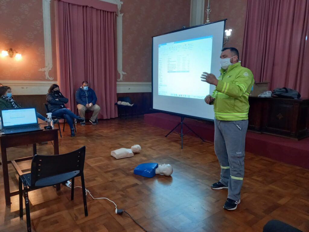 La actividad estuvo a cargo de Nicolás Leandro Cava, Sub Oficial ayudante del Cuerpo de Bomberos Voluntarios de San Pedro e Instructor internacional de primeros auxilios y RCP. El objetivo fue brindar a todos quienes cumplen tareas en el Palacio Municipal por el que transitan a diario cientos de personas, herramientas para poder intervenir ante situaciones de emergencia que permitan salvar vidas.