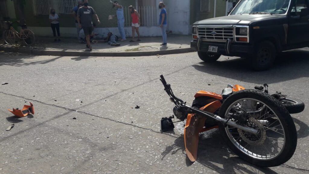 Este martes al mediodía se produjo un accidente de transito donde un joven sufrió un fuerte golpe en la cabeza al colisionar con su moto contra una camioneta.