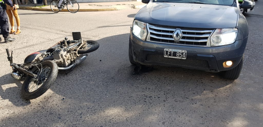El choque se produjo entre una camioneta Renault Duster color gris en la que circulaba un hombre mayo que es impactado por una motocicleta Gilera 125 cc que era conducido por una joven de alrededor de 20 años de edad.