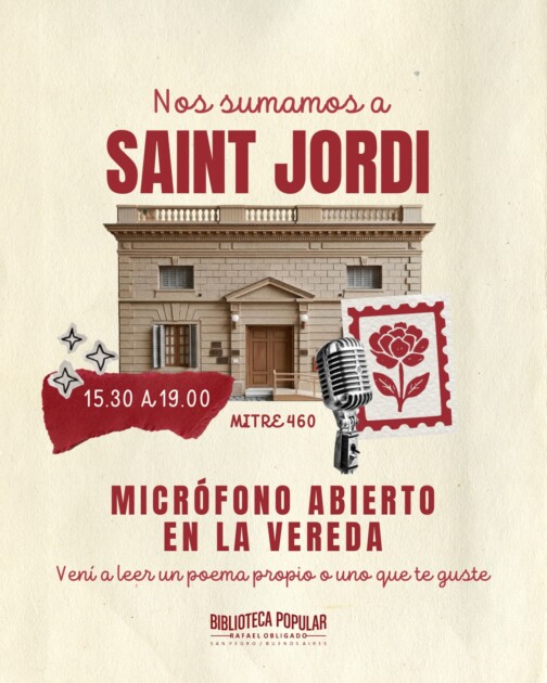 La Biblioteca Popular Rafael Obligado participará de la celebración de Sant Jordi, una festividad de origen catalán que combina la tradición de regalar libros y rosas. La propuesta, impulsada por el Casal Catalán de San Pedro, se llevará adelante este jueves 23 de abril en distintos puntos del centro.
